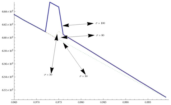 In addition, when , the optimal order quantity begins to show bifurcation mutation from , and the change interval of is . The value of is the smallest when and the largest when . When , the optimal order quantity begins to show a bifurcating mutation from , and the change interval of is , and the value of is the smallest when and the largest when . When , the optimal order quantity begins to show bifurcation mutation from , and the change interval of is , and the value of is the smallest when and the largest when . When , the optimal order quantity begins to show bifurcation mutation from , and the change interval of is , and the value of is the smallest when and the largest when .