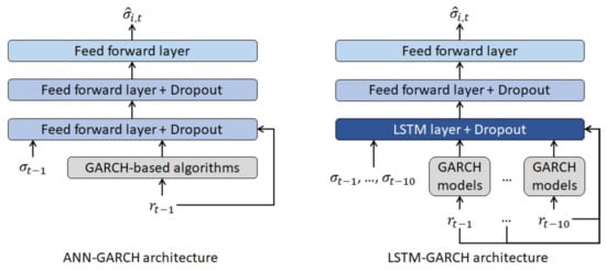 - Kim, H.; Won, C. Forecasting the volatility of stock price index: A hybrid model integrating LSTM with multiple GARCH-type models. Expert Syst. Appl. 2018, 103, 25–37. [Google Scholar] [CrossRef]
