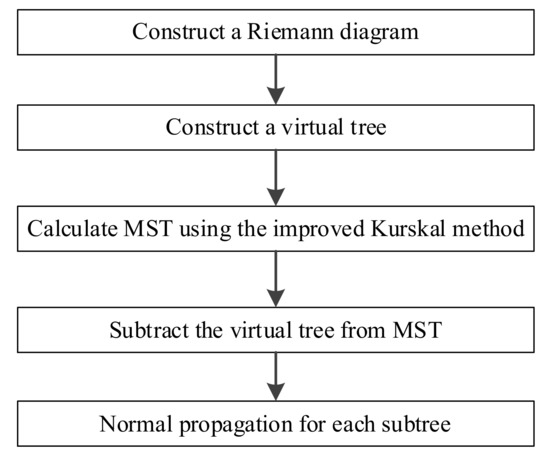 This paper modifies the initial state of the Kruskal method. The virtual tree and other isolated points in the Riemann graph form the initial state of the improved Kruskal method. Then, the Kruskal method is used to add edges to obtain the minimum spanning tree. Figure 5 shows the structure of this minimum spanning tree.