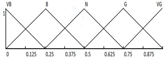 VB = very bad = (0, 0, 0.25); B = bad = (0, 0.25, 0.5); N = neutral = (0.25, 0.5, 0.75); G = good = (0.5, 0.75, 1); and VG = very good = (0.75, 1, 1).