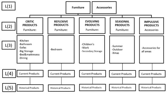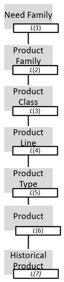 With this hierarchy, we can represent the usual levels present in the product portfolio Kotler [90], as shown in Figure 4, where L(6) corresponds to the set P and L(7) corresponds to the set HP.