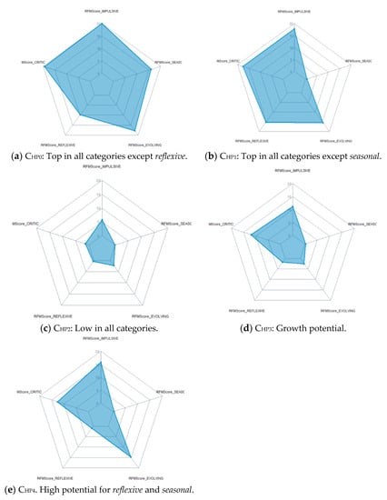 - Chang, H.-C.; Tsai, H.-P. Group RFM analysis as a novel framework to discover better customer consumption behavior. Expert Syst. Appl. 2011, 38, 14499–14513. [Google Scholar] [CrossRef]