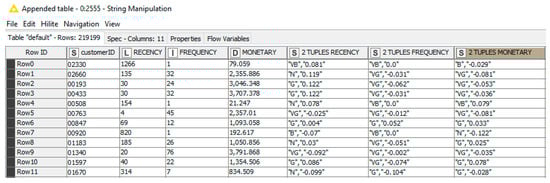 The RFM model is a very well-known technique that is defined by three measures (recency, frequency and monetary), which are normally divided into five equal quintiles (20% group) and combined into a three-digit RFM cell code (Bult and Wansbeek [20]; Bitran and Mondschein [29]; Miglautsch [30]; Chang et al. [31]; Miglautsch [32]). According to our experience and prior findings, RFM values could be firm-specific and are based on the nature of the products and customers’ behaviour (Lumsden et al. [33]). Many authors have attempted to improve the original RFM model. Wei et al. [34] prepared a summary of these improvements covering RFM different versions until 2010, and Ernawati et al. [35] continued that work and summarized new versions and improvements to the RFM model from 2015 to 2021. One of the proved improvements of the traditional RFM model was the fuzzy linguistic 2-tuple RFM model (Carrasco et al. [36,37]; Martínez et al. [38]).