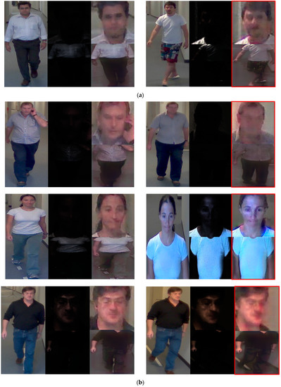Many studies have been conducted, to date, on human recognition methods without the low-illumination problem. Human recognition methods can be largely classified as face recognition, body recognition, and face and body recognition. First, for face recognition, Grgic et al. [1] acquired face images from three specified positions applying five cameras. The performance of recognition for the obtained face images was measured using the principal component analysis (PCA) method. Banerjee et al. [2] applied three categories of open databases, ChokePoint, SCface, and FR_SURV, for the experiment, and they measured the performance of recognition using soft-margin learning for multiple feature–kernel combinations (SML-MKFC) with the domain adaptation (DA) method.