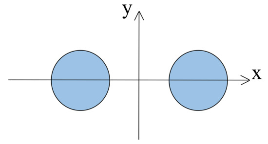 The transmission line is constituted by two conductors having circular cross-sections of radius R = 5 mm. The distance between the two centers is D = 20 mm (see Figure 7). The line carries two opposite sinusoidal currents of magnitude I = 1 A at frequency f = 1 kHz. The two wires are made of copper with conductivity σ = 56 × 106 S/m. This example is given to compare FEM-DBCI with other methods: FEM truncation, FEM-CT (Coordinate Transformations) [4,5], and FEM-BEM.