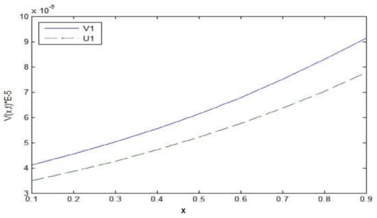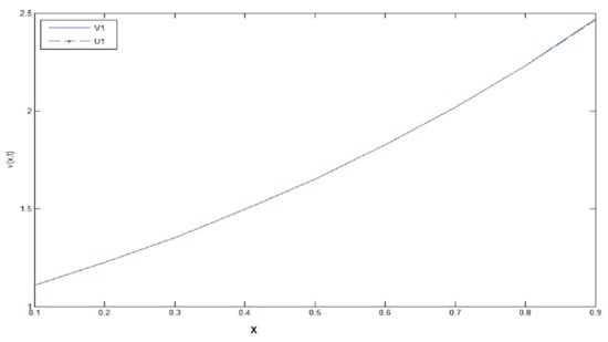 From Table A1 and Table A2 and Figure A1 and Figure A2 with space step , we see that the approximate solution tends to the exact solution when takes values close to zero, with convergence order