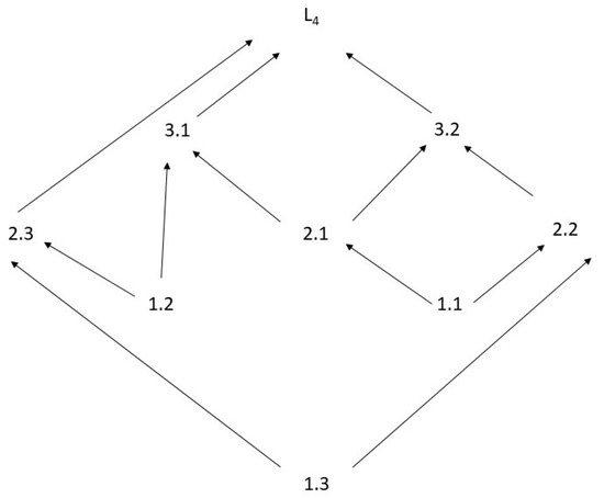 The optimal system may be presented as the graph of the embedded subalgebras, for example, for the algebra of the case (Figure 1). The system of embedded subalgebras may be constructed with the help of the graph [15].