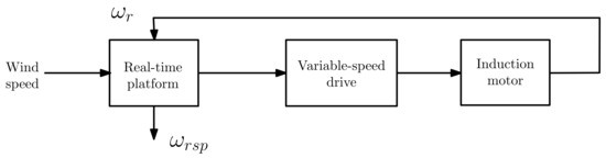 Then a signal is sent to a variable speed drive; this element is responsible for providing the appropriate torque to an induction motor so that its angular speed reaches the correspondent value associated with the specified wind speed as it is shown in Figure 3. Additionally, the value of that maximizes wind power extraction () is determined for a closed-loop operation.