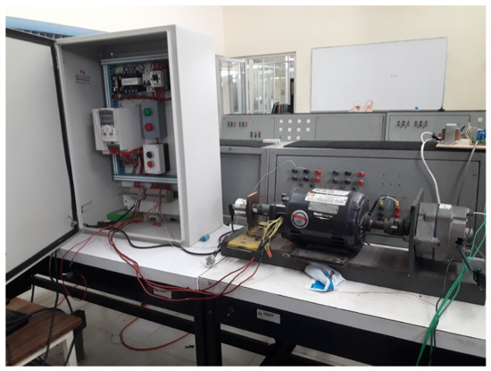 The induction motor and the PMSG are in a direct-drive connection; on the other hand, the PMSG is a four-pole three-phase type. One of the advantages of using a generator of low speed type is that the WECS avoid problems related to the use of a gearbox [51,52,53,54], becoming less expensive. In addition, because of the extensive length of its operating speed in the asynchronous mode, PMSG is preferred over other electrical generators [42]. Table 2 shows the parameters associated with the PMSG, while Figure 4 shows a photo of the experimental setup which includes the speed variator as well as the direct drive connection between the three-phase induction motor and the PMSG.