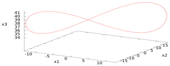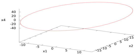 From this iterative procedure, we see that the limiting trajectory in this case is a cycle with a period . Its projections are shown in Figure 1 and Figure 2.