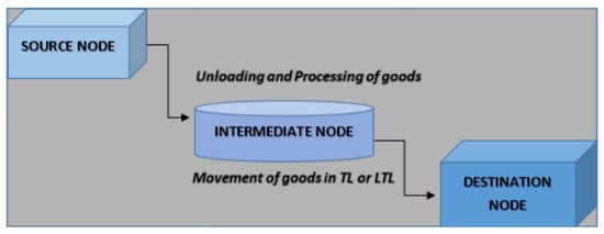 The movement of goods from intermediate to the final destination is done in full truckloads (TL) or less than truckloads (LTL), which occurs in the second stage of the model.
