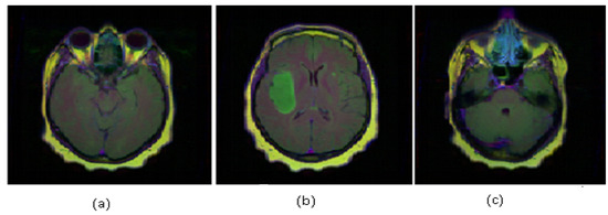 Samples of brain MR image: (a) Normal MRI. (b) Alzheimer’s disease. (c) Hemorrhage’s disease.