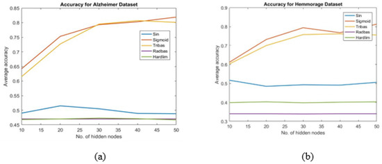 - The suitable activation function and appropriate number of hidden nodes of ELM are chosen by trial and error. In this work, it is found that, activation function and 50 numbers of hidden units provide better accuracy than those obtained by other combination.