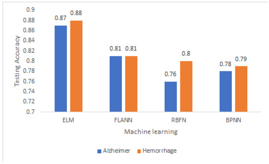 - In general, the proposed ELM-SSA model outperforms other hybridized classification models such as FLANN-SSA with an improvement in accuracy of 5.31% and 1.02% for Alzheimer’s and Hemorrhage datasets, respectively.