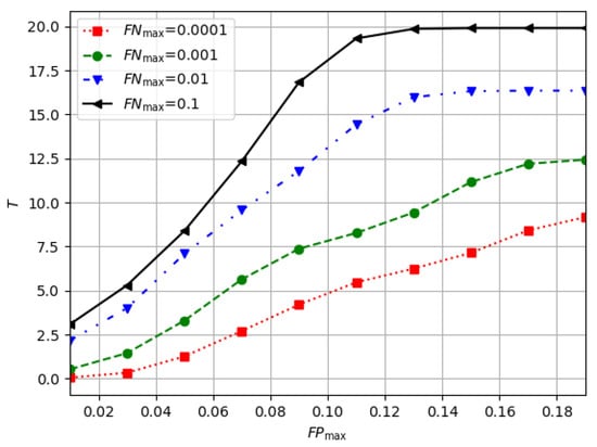and —are the maximum possible values of false negative and false positive probabilities, correspondingly. This approach allows us selecting optimal values for operation in a flexible 5G environment.The optimization problem is solved using direct search.