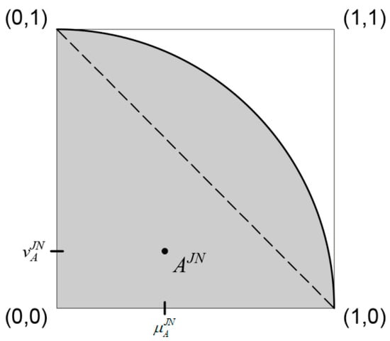 The definition of IFS-JN is very similar to Yager’s qth rung orthopair fuzzy sets (q-ROFS) [44] and Atanassov’s IFS of nth type (IFS-Tn) [24]. In fact, the only difference is in the range of the parameters, i.e., parameter q in q-ROFS is , while n in IFS-Tn is . It should be pointed out that, although interpretational surface of GIFS-JN/q-ROFS/IFS-Tn has no closed form, for it tends to be equal to the unit square.