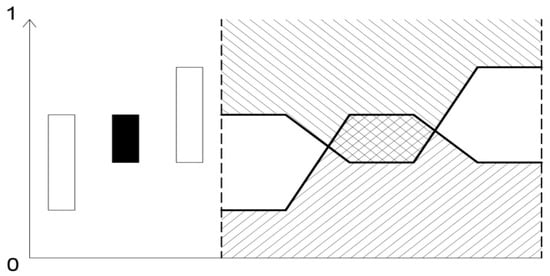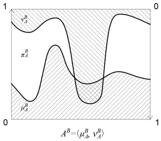 There are several graphical realizations of IFS. The most common interpretation [2,33] is given in Figure 1a. The values of both membership (thicker line) and non-membership (thinner line) degrees are measured on the same vertical axis.