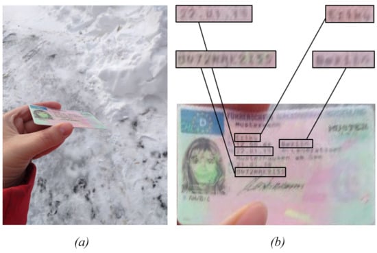 - Awal, A.M.; Ghanmi, N.; Sicre, R.; Furon, T. Complex document classification and localization application on identity document images. In Proceedings of the 14th IAPR International Conference on Document Analysis and Recognition (ICDAR), Kyoto, Japan, 9–15 November 2017; pp. 427–432. [Google Scholar]