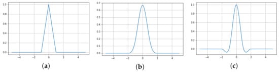 Reconstruction functions: (a) bilinear, (b) B-spline, and (c) bicubic.