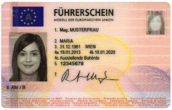 In the framework of the first experiment, we estimated the variations in the PPV and NPV for the proposed algorithm Q, depending on the minimum scaling coefficient threshold l. We calculated the PPV and NPV functions separately for each field f. We varied the threshold l values from 0.075 to 0.9 with a step of 0.025. For each threshold l, we generated 1000 positively and 1000 negatively marked images and calculated the predictive values. The parameter n of the algorithm Q that defines the vertex number of the level curve approximation was set to 100. Figure 10 shows an example of the estimated PPV and NPV curves that were calculated for several text fields of the new Austrian driving license document, which is shown in Figure 9.