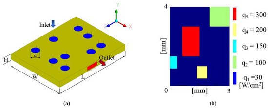 - Cho, E.S.; Choi, J.W.; Yoon, J.S.; Kim, M.S. Experimental study on microchannel heat sinks considering mass flow distribution with non-uniform heat flux conditions. Int. J. Heat Mass Transf. 2010, 53, 2159–2168. [Google Scholar] [CrossRef]
