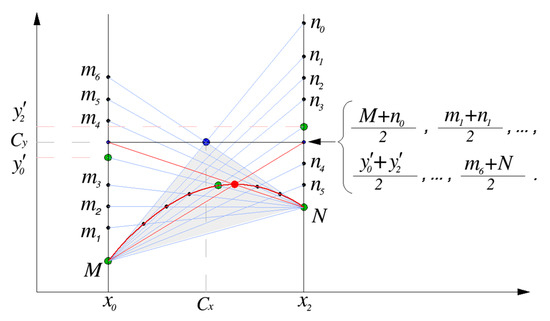 From the line segments and , see Figure 12, two line equations of the form resp. can be derived. From (49), the slope for the first line equation is