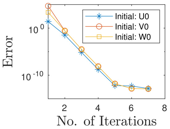 To test our algorithm, we take , , , tolerance: tol=1e-14 and , . The numerical results are given in Table 1.