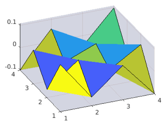 Consider given by where . Thus, all the hypotheses of Theorem 1 are satisfied and, therefore, there exists such that , and hence, the matrix equation (21) has a solution in . □
