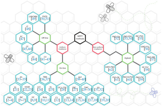 - Batarseh, M.G.; Za’ter, M.E. Hybrid maximum power point tracking techniques: A comparative survey, suggested classification and uninvestigated combinations. Sol. Energy 2018, 169, 535–555. [Google Scholar] [CrossRef]