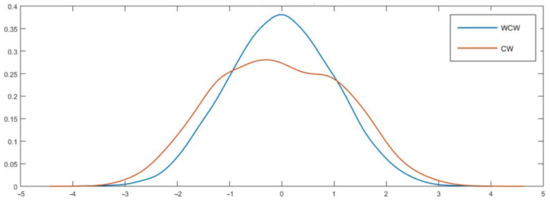 where is the k-th realization of our statistic and is the sample correlation between the i-th and j-th realization of the WCW-t statistics. Interestingly, as we discuss in Section 4, when using , the size of our test is usually stable, but it significantly improves the power of our test.