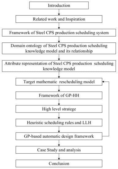 The rest of this paper is organized as follows. Section 2 is related work about CPS, steel scheduling, and hyper-heuristic algorithms. Section 3 established the construction of a steel CPS production scheduling model based on ontology. Section 4 describes the design of a hyper-heuristic algorithm based on genetic programming. Section 5 shows the simulation results of GP-HH, and Section 6 provides the conclusions and future works.