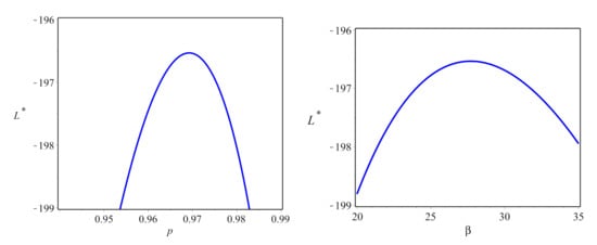 The MLEs of the unknown parameters , and can be obtained by maximizing (24) with respect to , and , or equivalently by solving the following three nonlinear equations:
