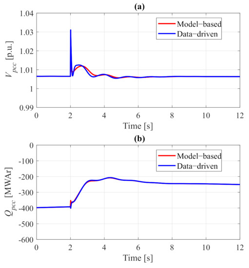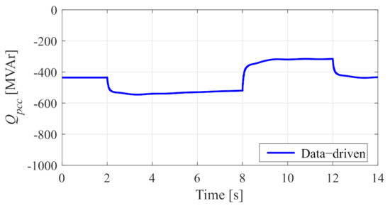 The proposed data-driven control is assessed considering different operating conditions according to the established voltage profile as well as transient faults to analyze power oscillations just after the fault clearing time. All simulations are carried out using Matlab/Simulink software, and a time step equal to is used for the implementation of the data-driven controller. The data-driven controller can be set up from the historical data collected from the grid or even from another model-based closed-loop operation of the STATCOM connected to the grid. Therefore, the data-driven controller will guarantee the dynamic performance of the STATCOM according to the rated reactive power because this will be mainly designed to operate to their limits.