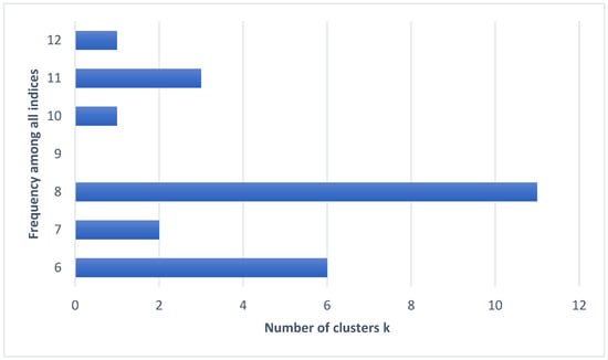 - Charrad, M.; Ghazzali, N.; Boiteau, V.; Niknafs, A. NbClust: An R Package for Determining the Relevant Number of Clusters in a Data Set. J. Stat. Softw. 2014, 61, 1–36. [Google Scholar] [CrossRef]