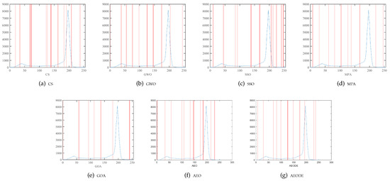 Figure 7 and Table 3 show the fitness function values of AEODE method and other optimization algorithms with different threshold levels.