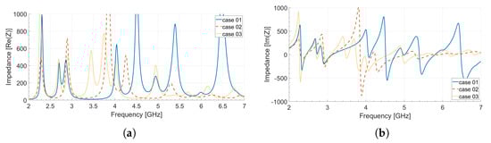 Obtained results of the impedance values for each of the unit cell use cases at the frequencies of interest (extracted results from Figure 8).