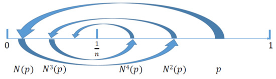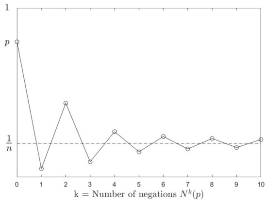 Proposition 4. For linear negator N, the following formula holds for any p in [0,1] and for all: Proof. The formula (21) holds for : , and (21) holds also for in (20). Suppose that (21) holds for . Using (19) and (20) show that (21) holds for : . □