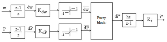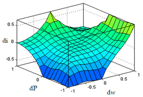 In this case, the behavior of the control system depends on the choice of the amplification coefficient of current reference. A block with Mamdani’s structure was used in the fuzzy controller. A base with nine rules was used, identical to the rules of the tracking method. Three fuzzy variables were used for each variable of the regulator, with three membership functions, triangular and trapezoidal. This structure gives the most nonlinear character of the fuzzy controller.