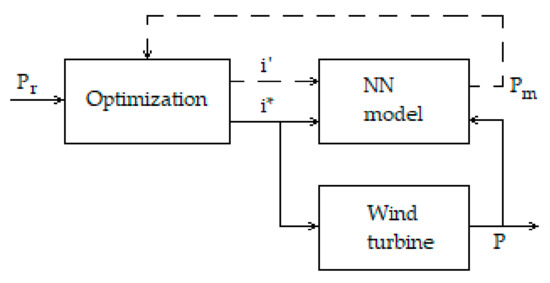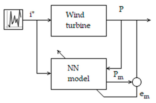 A fuzzy block with Sugeno’s structure, and other forms of membership functions, may also be tested as a future direction of research. It is recommended to test fuzzy controllers with more rules, more fuzzy variables, and more membership functions. For example, with five fuzzy values, such as: negative big, negative small, zero, positive small, positive big. This regulator could more precisely capture particular parts of the maximum power point tracking. However, it will lose the nonlinearity of the regulation, which is the main characteristic of the fuzzy controller. The use of deep learning techniques allows the identification of the wind turbine with a neural network model and the introduction of a neural predictive control method. The identification can be done offline using data taken from the wind turbine. The process of training the neural networks used as a model and as a regulator is a complex process, requiring several phases and a long computation time. This process requires significant computing resources, both a high computational speed and a high computational memory. The amplitudes of the uniformly distributed random signal must be chosen in the maximum value range of the system variables. The Levenberg–Marquardt neural training method ensures a small mean squared error is obtained after a shorter training time than in the case of other methods. It does not get stuck in local minima. In the presented example, a structure with the lowest value of mean squared error was chosen. From the simulations, it results that the presented solution has a longer duration of the transient state than in the case of fuzzy regulation. It is observed that the generated power follows the prescribed power with a certain error, and the state trajectories are around the optimal trajectory. A better identification of the process and a better dimensioning of the prediction law could be tried. Other neural network structures with different numbers of layers and neurons can be tested as a future direction of research. Different trainings lead to different structures of the neural network and to different values of weights and biases.