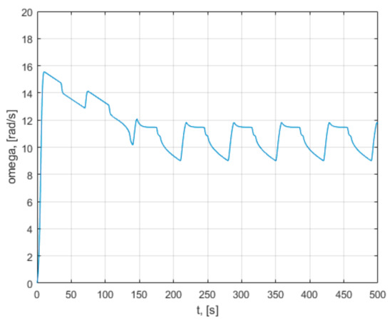 From the analysis of state Equation (8), it is observed that the rotation speed changes if the rotation acceleration changes: