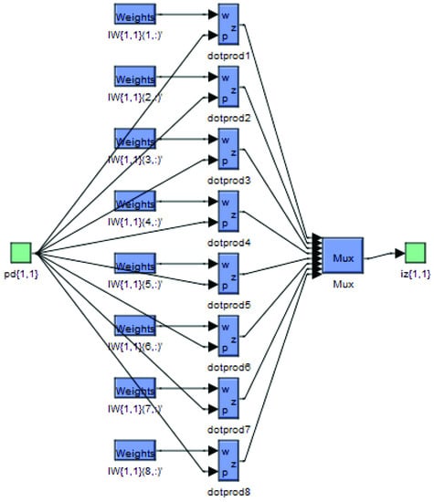 The schematic diagram of the FNN controller based on the Levenberg–Marquardt algorithm is shown in Figure 12. This controller is more robust compared to other algorithms.
