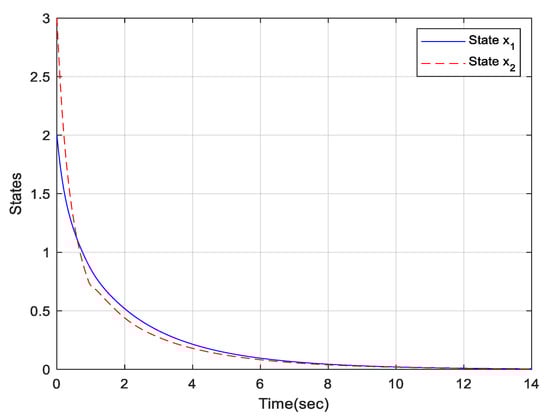 The trajectories for states of the T-S fuzzy time-delay system (37) is shown in Figure 4 with initial value and . The solid line is the state of and the dotted line is the state of .
