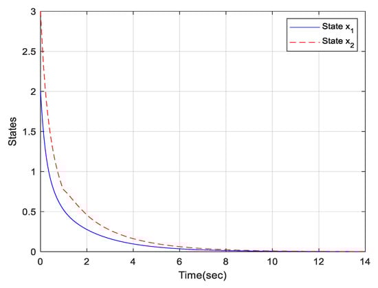 The trajectories for states of the T-S fuzzy time-delay System (37) is shown in Figure 3 with initial value and . The solid line is the state of and the dotted line is the state of .