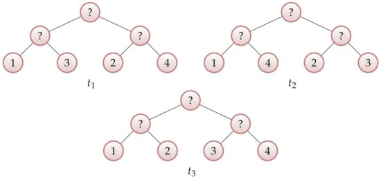 - Bóna, M.; Flajolet, P. Isomorphism and symmetries in random phylogenetic trees. J. Appl. Probab. 2009, 46, 1005–1019. [Google Scholar] [CrossRef] [Green Version]