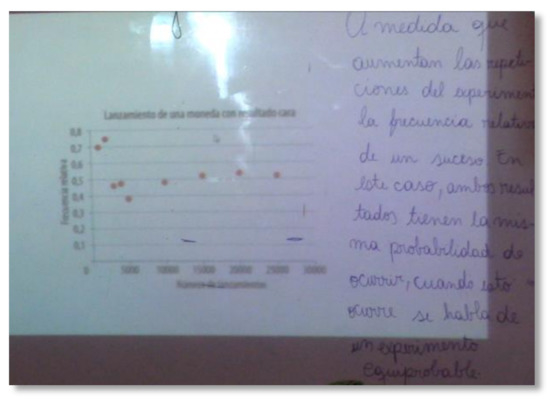 This study considers eight classroom sessions that were videotaped in 2015–2016, and that specifically address topics related to the subject of probability (Table 2). Each session was 90 min long. The classes were recorded using an audio recorder hung around the teacher’s neck and a video camera that recorded the teacher and the entire group. The camera was placed in a corner of the room, and the board and as many students as possible were framed in the shot. During the recording, the person filming was aware at all times of what was happening in the room in case it was necessary to pan or zoom the camera to better record what was happening. The camera stayed on the teacher (who is always the focus of the study), framing as many students as possible and zooming to record the teacher’s interactions with one or more students or to focus on the worksheets, when one or more students were explaining something written on them.
