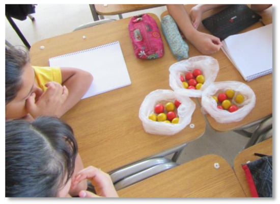 This component seeks to describe the teaching and learning resources that teachers use to manage probability tasks they present to favour the development of probabilistic reasoning in their students. There are various authors and organizations that, for the specific case of probability, have promoted its teaching using various resources, such as manipulative materials and games, technological resources, etc. [31,32,33,34,35,36,37]. Batanero [36], for example, notes that “children are surrounded by chance from birth, in their games (casting lots, trivia games, cards, etc.)” (p. 5), alluding to the probability teaching.