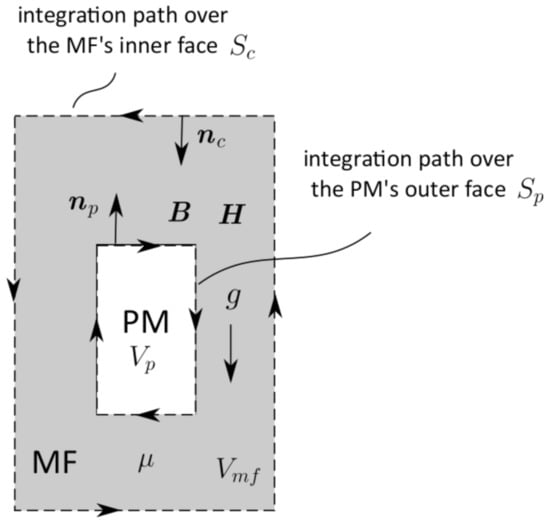 where corresponds to the magnetic flux density at the MF, i.e., the free space interface where . Similarly, corresponds to the magnetic flux density at the PM’s surface . is the density of magnetostatic energy in region 1.