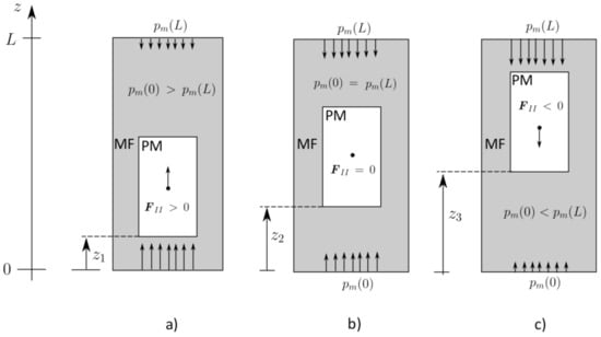 where is an area of the PM’s base; is an upper limit in region 1; is a lower limit in region 4; is the height of the container; and is the levitation height. For convenience, the dependence of on the vertical height is not written explicitly in Equation (36).