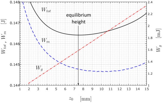 Here, the gravitational energy is given as a function of a PM levitation height, as shown in Figure 5.