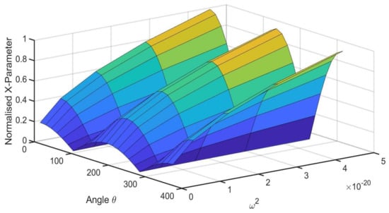 Appendix F. Symmetrical X-Parameter(Xp) and Y-Parameter (Yp) as a Function of Angle (θ) at a Thickness of h = 1.7 × 10−5 m, time t = 10 Days and Varying Separation Constant (ω2)